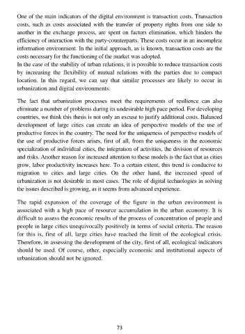 In the case of the stability of urban relations, it is possible to reduce transaction costs