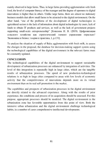 mainly observed in large farms. Thus, in large farms providing agglomeration with fresh