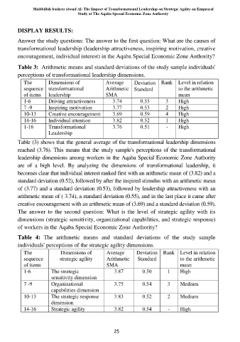 Table (3) shows that the general average of the transformational leadership dimensions