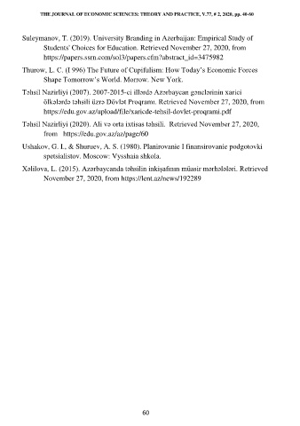 THE JOURNAL OF ECONOMIC SCIENCES: THEORY AND PRACTICE, V.77, # 2, 2020, pp. 40-60