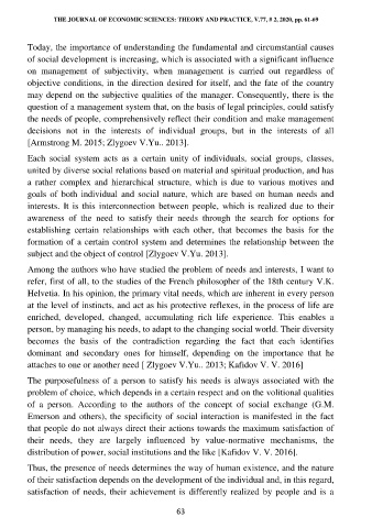 THE JOURNAL OF ECONOMIC SCIENCES: THEORY AND PRACTICE, V.77, # 2, 2020, pp. 61-69