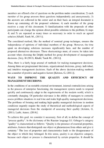 The considered method, like the method of nominal group technique, ensures the