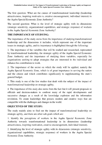 by transformational leadership, the strategic agility of the Aqaba Special Economic