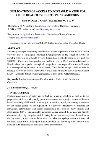 Keywords: Implications, Access, Portable Water, Child Health Production,