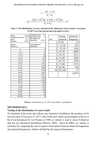 Table 3: The distribution of scores obtained in the admission exam to master’s program