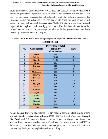 Table 4: Sub-National Percentage Impact of Explosive Ordnance and Their