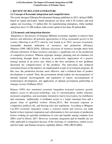 A.M.Gebreselassie: The Impact of Economic Integration on SME