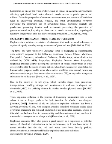 Landmines, as one of the types of (EO), have an impact on economic development,