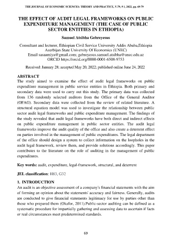THE JOURNAL OF ECONOMIC SCIENCES: THEORY AND PRACTICE, V.79, # 1, 2022, pp. 69-79