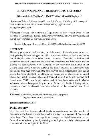 THE JOURNAL OF ECONOMIC SCIENCES: THEORY AND PRACTICE, V.79, # 1, 2022, pp. 80-89