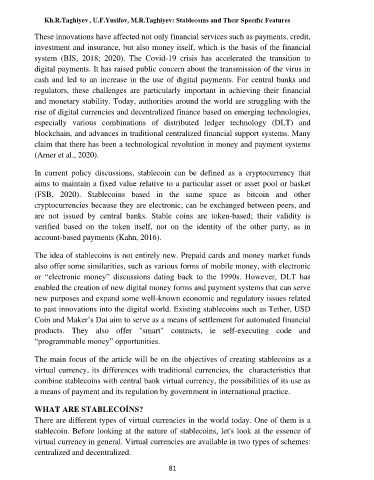 Kh.R.Taghiyev , U.F.Yusifov, M.R.Taghiyev: Stablecoıns and Theır Specıfıc Features