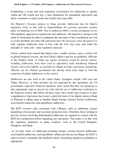 Kh.R.Taghiyev , U.F.Yusifov, M.R.Taghiyev: Stablecoıns and Theır Specıfıc Features