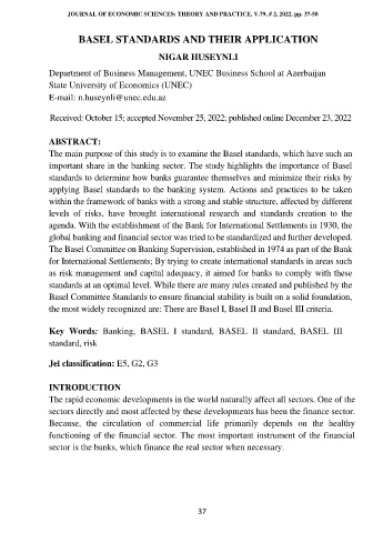THE JOURNAL OF ECONOMIC SCIENCES: THEORY AND PRACTICE, V.79, # 2, 2022, pp. 37-50
