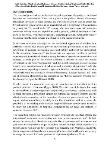 of Investment in the Equilibrium of International Political Economy (Game Theory Approach)