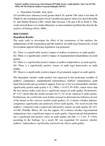 of the factors on the criterion variable (audit quality). H1 evaluates whether auditors’