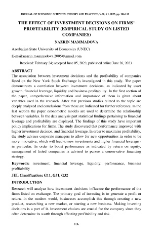 THE JOURNAL OF ECONOMIC SCIENCES: THEORY AND PRACTICE, V.80, # 1, 2023, pp. 106-118