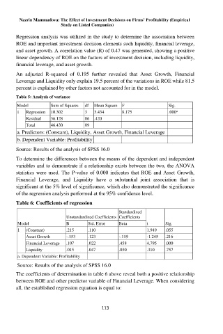 statistics were used. The P-value of 0.000 indicates that ROE and Asset Growth,