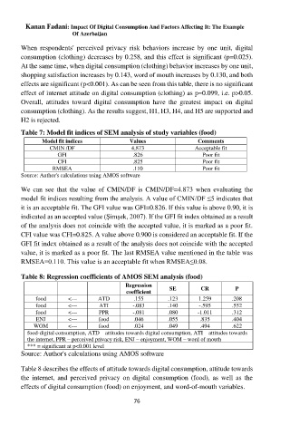Table 8 describes the effects of attitude towards digital consumption, attitude towards