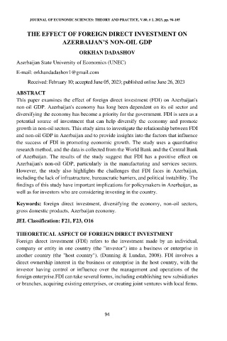 THE JOURNAL OF ECONOMIC SCIENCES: THEORY AND PRACTICE, V.80, # 1, 2023, pp. 94-105