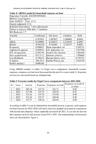 Table 4: ARIMA model for household expenses on food
