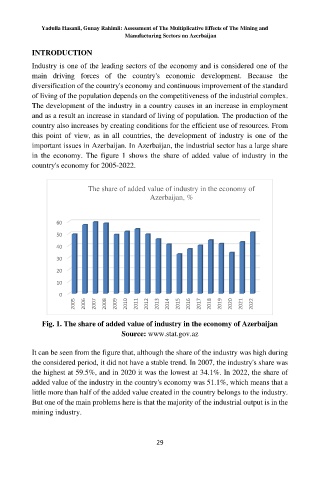 Fig. 1. The share of added value of industry in the economy of Azerbaijan