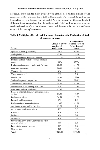 Table 4. Multiplier effect of 1 million manat inverstment in Production of food,