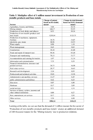 Table 5. Multiplier effect of 1 million manat inverstment in Production of non-
