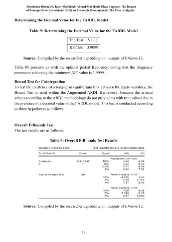 the presence of a decimal value in theF ARDL model. This test is conducted according
