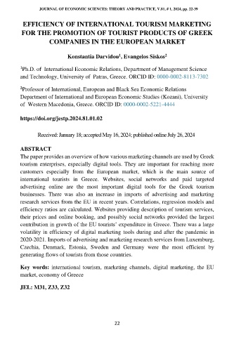 THE JOURNAL OF ECONOMIC SCIENCES: THEORY AND PRACTICE, V.81, # 1, 2024, pp. 22-39