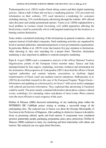 Tsekouropoulos et al. (2012) studies Greek skiing centres and their digital marketing