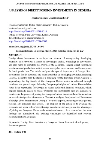 ANALYSIS OF DIRECT FOREIGN INVESTMENTS IN GEORGIA