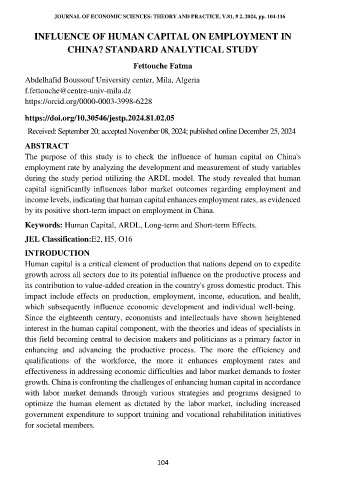 THE JOURNAL OF ECONOMIC SCIENCES: THEORY AND PRACTICE, V.81, # 2, 2024, pp. 104-116