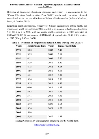 Table 1 . Evolution of Employment rates in China During 1990-2022)⸓(