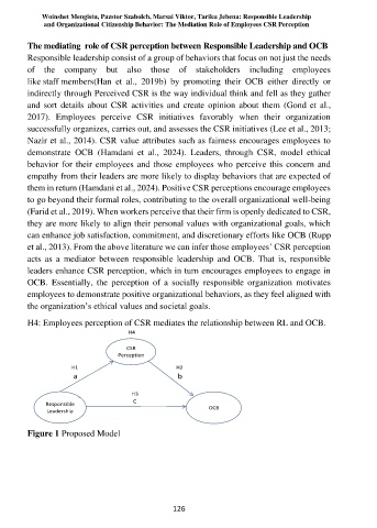 H4: Employees perception of CSR mediates the relationship between RL and OCB.