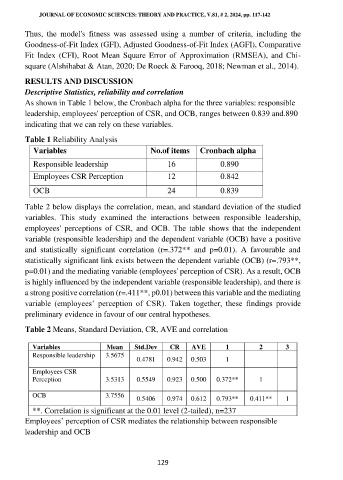 leadership, employees' perception of CSR, and OCB, ranges between 0.839 and.890