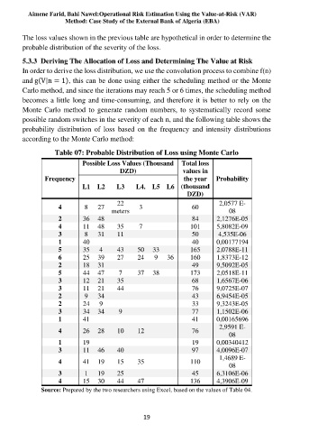 Table 07: Probable Distribution of Loss using Monte Carlo