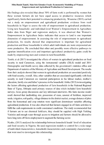 Tambi, et al (2017) investigated the effects of women in agricultural production on food