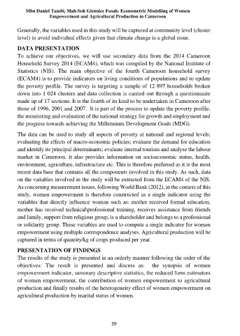 To achieve our objectives, we will use secondary data from the 2014 Cameroon