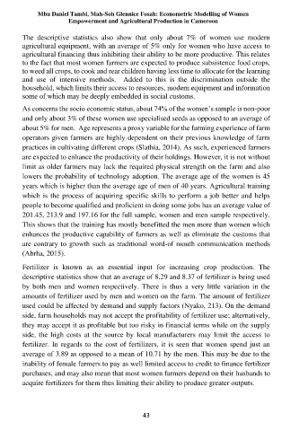 about 5% for men. Age represents a proxy variable for the farming experience of farm