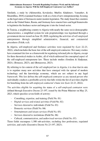 In Algeria, self-employed and freelance activities were regulated by (Law 22-23,