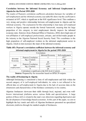 self-employment and the informal economy (see table 05) show that the coefficient is