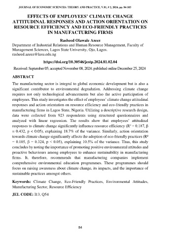 THE JOURNAL OF ECONOMIC SCIENCES: THEORY AND PRACTICE, V.81, # 2, 2024, pp. 84-103
