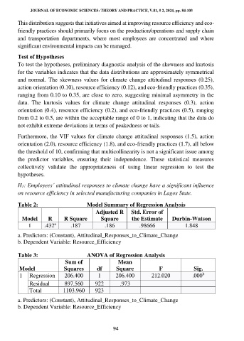 Table 2: Model Summary of Regression Analysis