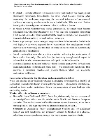 • In Model 1, the total effect of job insecurity on life satisfaction was negative and