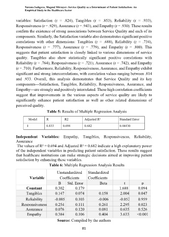 Table 5: Results of Multiple Regression Analysis
