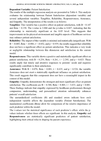 Tangibles: This variable has a positive effect on patient satisfaction, with B = 0.147