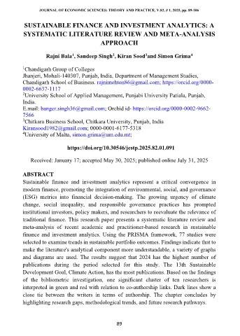THE JOURNAL OF ECONOMIC SCIENCES: THEORY AND PRACTICE, V.82, # 1, 2025, pp. 89-106
