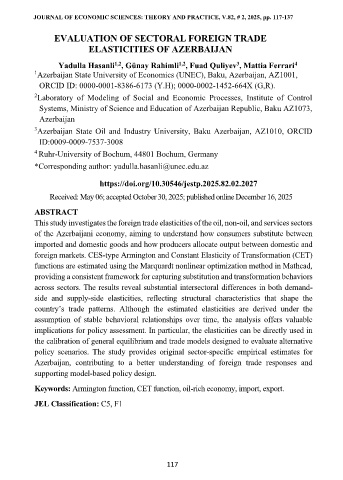 THE JOURNAL OF ECONOMIC SCIENCES: THEORY AND PRACTICE, V.82, # 2, 2025, pp. 117-137