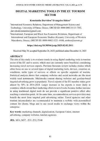 THE JOURNAL OF ECONOMIC SCIENCES: THEORY AND PRACTICE, V.82, # 2, 2025, pp. 61-78
